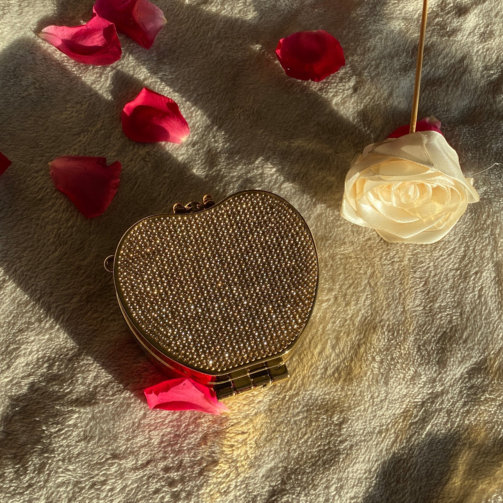 The Aurelian Apple is a breathtaking fusion of botanical whimsy and high-jewelry craftsmanship, designed to be the crowning jewel of any evening ensemble. This sculptural minaudière features a classic "forbidden fruit" silhouette, entirely saturated in a dense pavé of golden crystals that radiate a warm, honeyed glow. Framed by polished gold-tone hardware and topped with a sophisticated black resin clasp, the piece balances opulence with a modern, artistic edge. Whether held as a precious clutch or worn via its discreet shoulder chain, the Aurelian Apple serves as a luminous conversation piece that captures the light and the imagination in equal measure.