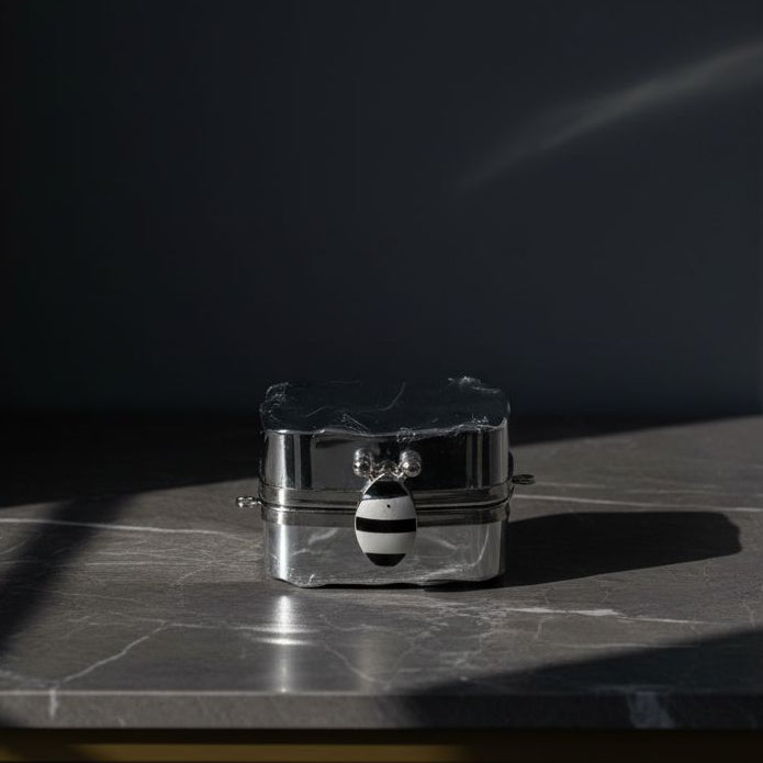 Step into the night with The Midas Box, a luxury clutch designed to turn every outing into an event. This exquisite piece features a stunning, silver-toned, hammered texture that beautifully catches and reflects light, giving it a unique, fluid, and molten appearance.